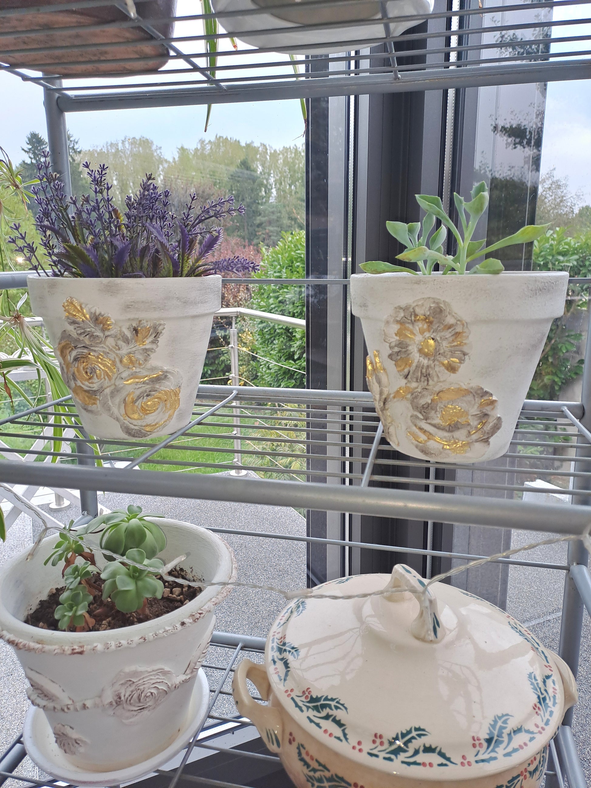 Duo de pots en terre cuite Relookés - Style shabby chic