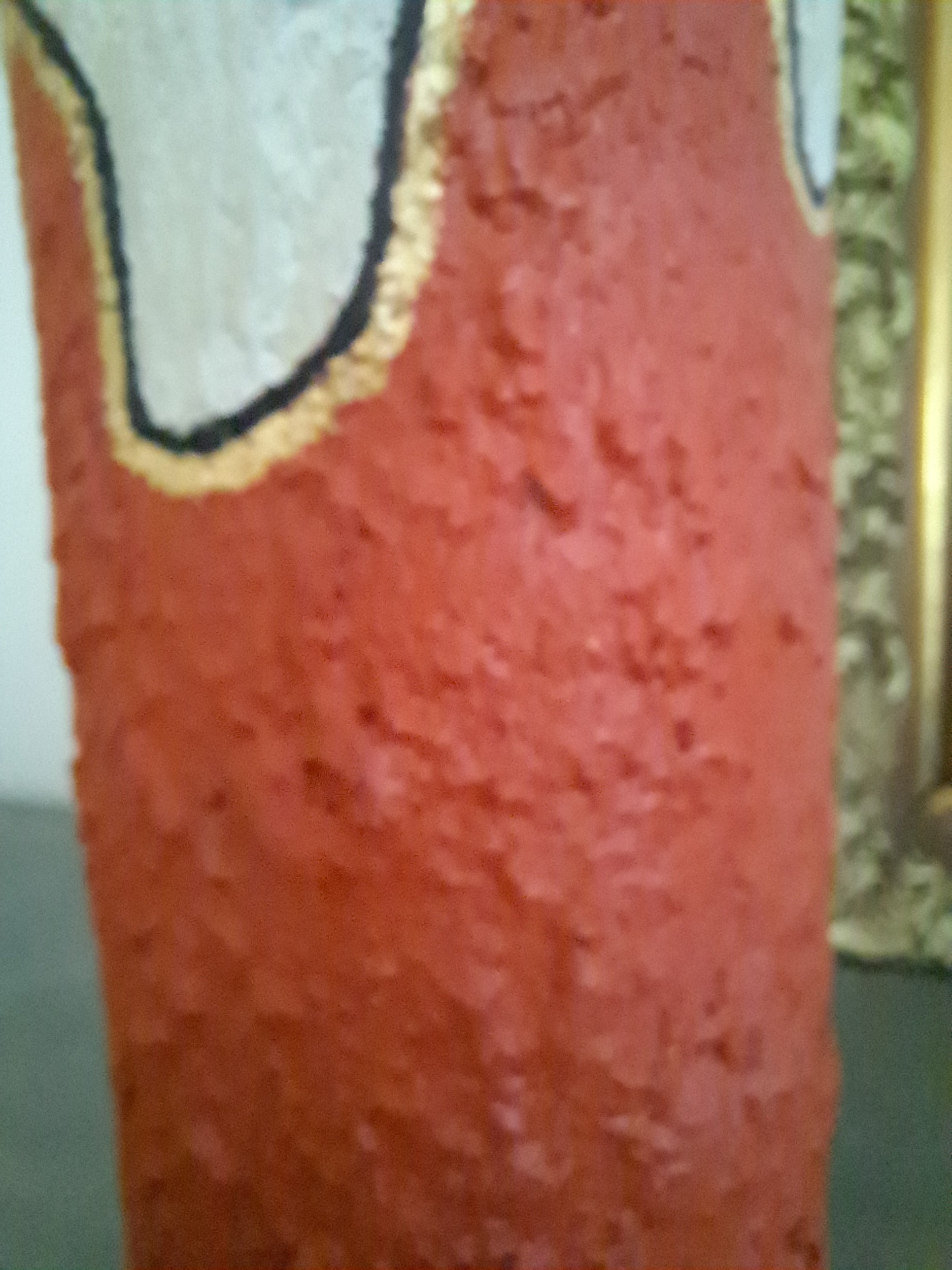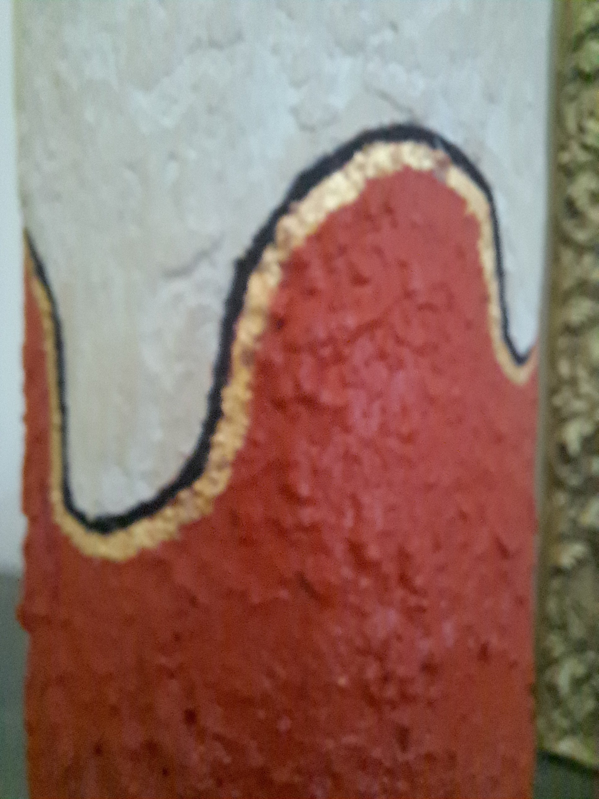 - H 41 cm L 10,5 cm . Matériaux : verre + peinture acrylique & craie + feuille d'or.
